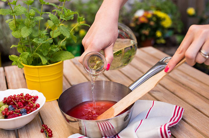 Do vychladnutej zmesi primiešame 150 ml sektu tak, aby nám zostali v zmesi bublinky.