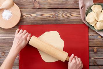 Rozdelíme ho na 10 – 12 dielov, z ktorých vyvaľkáme tenké placky.