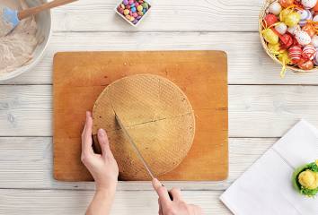 Vychladnutý korpus prerežeme na polovicu. Spojené pláty postavíme na rozrezanú časť. Vznikne tak telo zajka. Približne v polovici „chrbta“ urobíme šikmo rez tak, že vznikne zajkova hlava. Zo zrezanej časti vytvoríme chvostík.