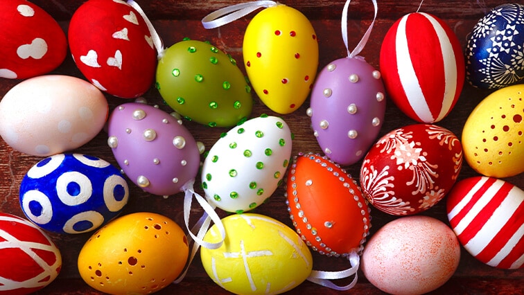 Veľkonočné vajíčka, inak nazývané kraslice, sú klasika, no určite nie nuda. Skúste napríklad trblietky či ozdobné kamienky.