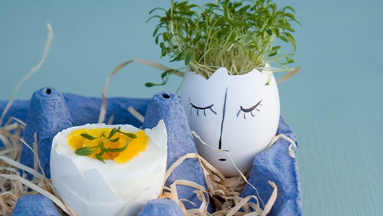 A čo tak si na Veľkú noc spraviť ekologické veľkonočné dekorácie na stôl z obyčajných škrupiniek od vajec? Zasaďte do nich napríklad žeruchu a zbierajte ju na Veľkonočnú nedeľu k čerstvo upečenému chlebu.