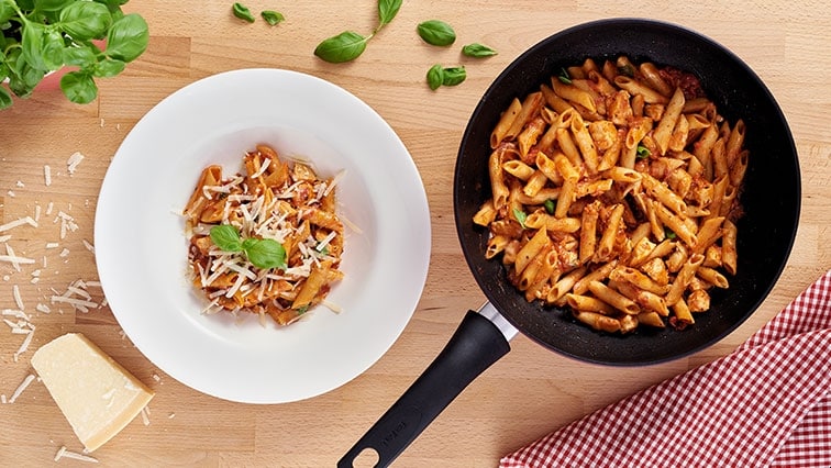 Rýchlo a jednoducho pripravíte aj cestoviny s kuracím mäsom a paradajkovou omáčkou****.