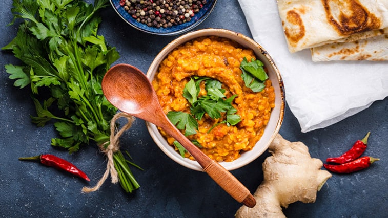 Voňavé jedlá plné zeleniny, ryže, obilnín, strukovín, prekvapujúce kombinácie omáčok s jogurtami a indickým korením. Taká je indická kuchyňa. Jej recepty sú jednoduché a pomocou nich dokážete vyčarovať exotické jedlá, ktoré si zamiluje celá rodina. Patrí medzi ne aj jednoduchý dhal z červenej šošovice.
