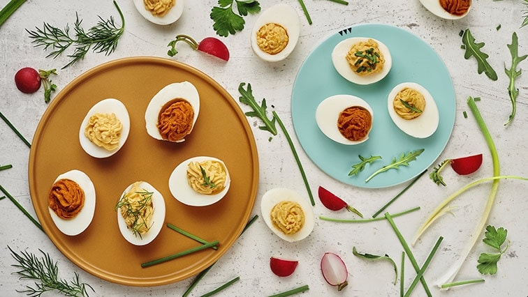 Natvrdo uvarené bielky naplnené nátierkou zo žĺtkov a z ďalších surovín vás zachránia, keď príde nečakaná návšteva a vy jej nemáte čo ponúknuť. Recept na plnené vajíčka je jednoduchý, nájdete ho na Hello Tesco.