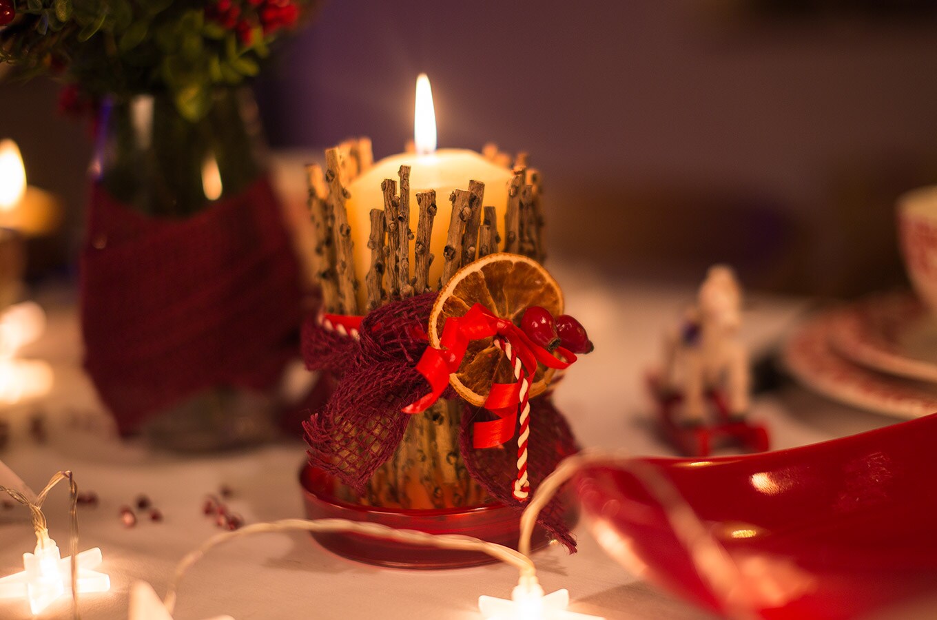 Okrem tradičných bielych tanierov nezabudnite na homemade svietniky z voskových sviečok, menovky upevnené na šiškách či vo váze naaranžovaná vianočná kytica z ihličia, červeného vtáčieho zobu a pod.