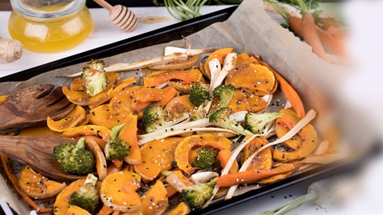 V plytkom plechu upečte zeleninu ako prílohu k mäsu