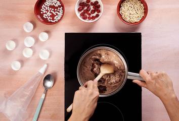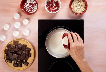 Za stáleho miešania vytvoríme hladkú čokoládovú masu – ganáche.