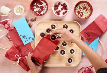 Na malé papierové vrecúška napíšeme čísla od 1 do 24. Do každého vrecúška vložíme jeden bonbon a previažeme špagátikom alebo mašličkou. Každý deň nás čaká prekvapenie – aká plnka to bude dnes?