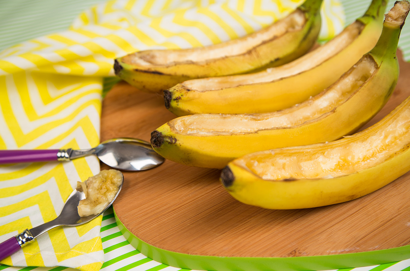 Banány narežeme do polovice ako loďky a vydlabeme ich lyžičkou.