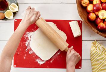 Rúru zohrejeme na 200 °C a pripravíme si plech s papierom na pečenie. Cesto rozvaľkáme tak, aby nebolo príliš tenké.