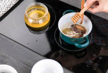 Takto vzniknutú zmes dáme do veľkej misky. Na malej panvici zmiešame maslo, med, cukor, vanilkový extrakt a soľ a miešame, kým sa cukor nerozpustí.