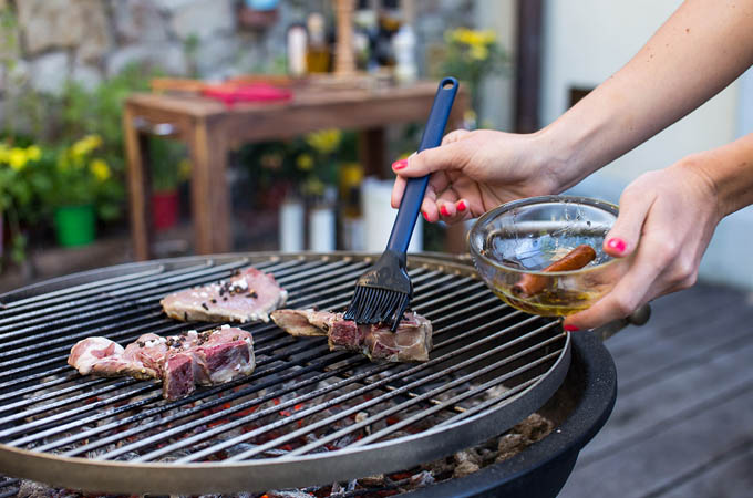 Z každej strany ho prudko upečieme na grile. Počas pečenia môžeme plátky mäsa potierať olivovým olejom, do ktorého sme pridali klinčeky a škoricu. Dĺžka pečenia závisí od veľkosti mäsa.
