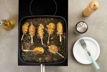 Grilujeme dozlatista z oboch strán alebo pečieme pri 180 °C asi 15 minút. Tip na servírovanie: Podávame so zeleninovým šalátom: zeleninu nakrájame, pokvapkáme olivovým olejom, osolíme a okoreníme podľa chuti.