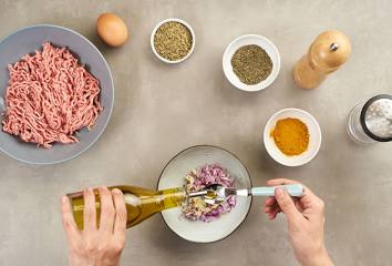 Zmes zmiešame s mäsom a necháme chvíľu postáť.
