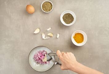 Cibuľu nakrájame nadrobno, cesnak prelisujeme.