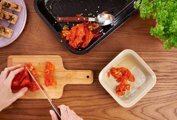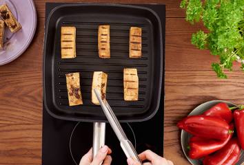 Grilujeme tofu z oboch strán a podávame s paprikovým šalátom a čerstvým chlebom.
