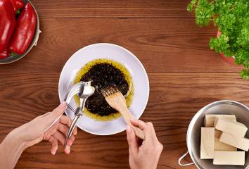 Tofu potrieme marinádou, vložíme ho do misky a necháme ho marinovať na chladnom mieste.