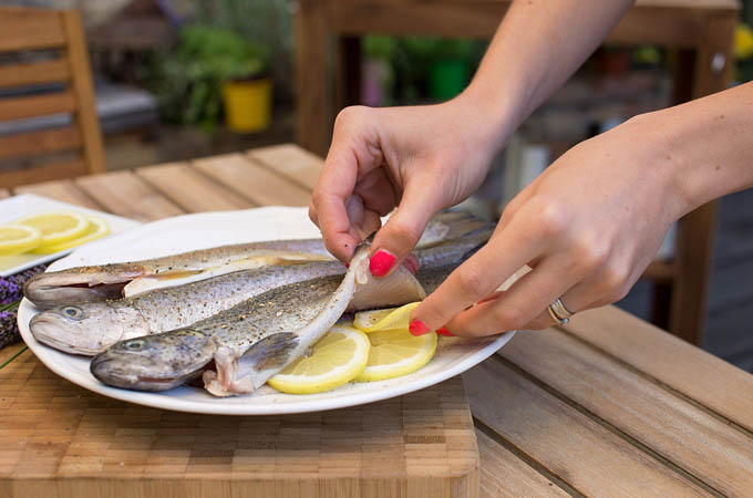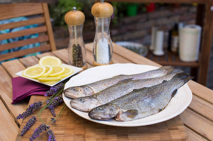 Pstruhy zvnútra nasolíme a okoreníme.