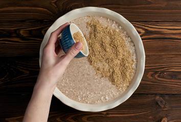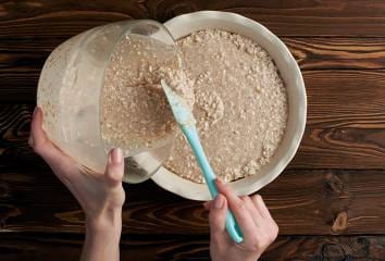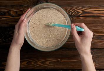Rúru vyhrejeme na 170 °C. Suroviny na cesto dáme do misy a vypracujeme cesto.