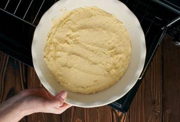 Cesto dáme do formy a povrch zarovnáme. Dáme piecť asi na 30 minút.