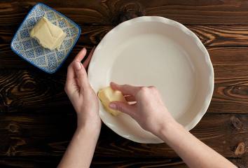 Formu na koláče vymažeme tukom, vysypeme múkou.