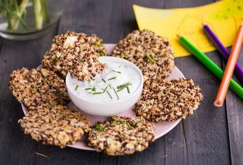 Pečieme približne 30 minút, až kým sú koláčiky upečené pekne dohneda. Odporúčame servírovať s bylinkovým dipom.