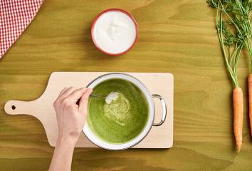 Uvarenú zeleninu rozmixujeme, pridáme jogurt.