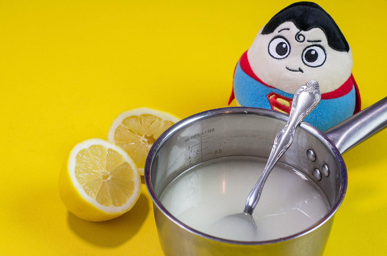 4. krok: Zmiešame v kastróle vodu, cukor a jednu kávovú lyžičku citrónovej šťavy.