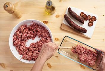 Klobáska zapečená v mletom mäse je spôsob, ako jedným jedlom potešiť všetkých „mäsožrútov“ dvakrát.