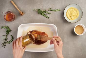 Šunku potrieme zmesou a pečieme asi ďalších 30 minút, prípadne kým sa na nej nevytvorí glazúra. Šunku necháme aspoň 45 minút odstáť.