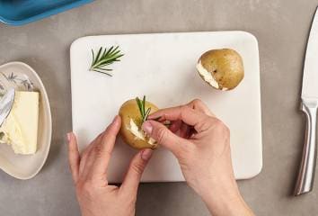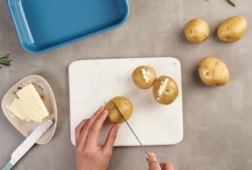 Zemiaky umyjeme, nešúpeme a spravíme do nich krížom zárezy.