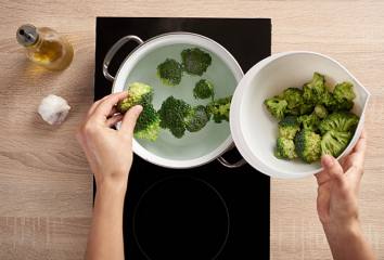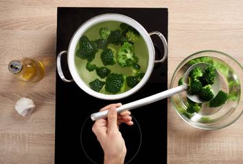 Brokolicu rozoberieme na ružičky a vo vriacej vode blanšírujeme 3 minúty.