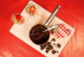 Pripravíme si čokoládový krém na makrónky: Smotanu zahrejeme v hrnci, ale pozor – nevaríme. Pridáme nalámanú čokoládu a miešame, kým sa zmes nerozpustí. Pre pikantný nádych pridajte čili. Čokoládový krém prelejeme do misky a necháme v chladničke stuhnúť.