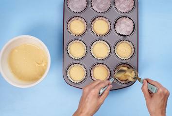 Košíčky na muffiny naplníme do 2/3 cestom a pečieme 20 – 25 minút. Hotové sú vtedy, keď do nich pichneme špáradlo a to je po vytiahnutí čisté.