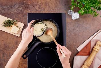 Smotanu a dijonskú horčicu zmiešame, prilejeme do koňaku a varíme asi 5 minút. Pridáme parmezán a roztopíme ho za stáleho miešania. Odstavíme.