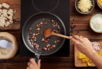 Slaninku nakrájame na malé kocky a smažíme na panvici do zlata. Slaninku preložíme do misky, tuk v panvici necháme.